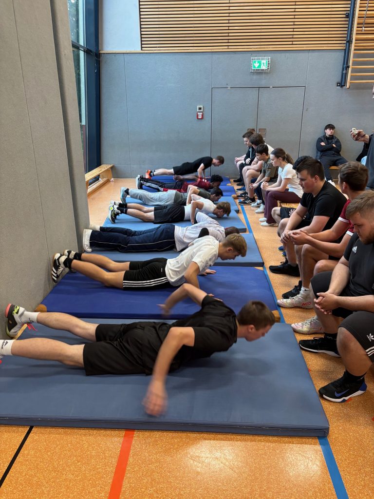 In unterschiedlichen sportlichen Disziplinen wurden die besten Schülerinnen und Schüler gesucht. Egal ob beim Medizinballwerfen, Seilsprung, Liegestütz, Eierlauf oder 50m-Sprint – überall standen Fairplay, Teamgeist und Spaß an der Bewegung im Mittelpunkt. Besonders spannend waren die beiden Mannschaftswertungen im Team-Rudern und dem Tauziehen. Die diesjährige Spitzenleistung wurde durch eine Schülerin im Wandsitzen erzielt. Mit 30 min und 2 sec war sie die unangefochtene Nummer 1.